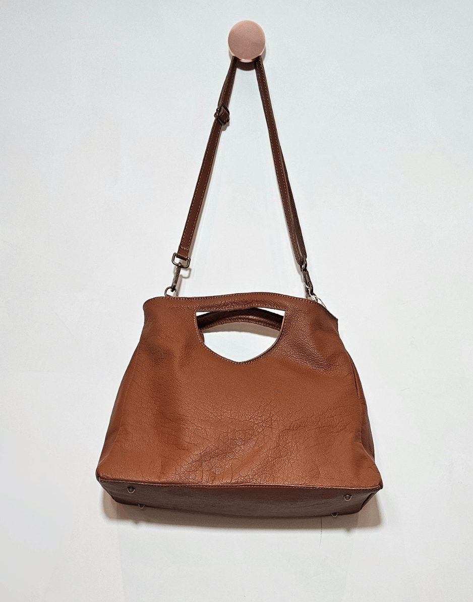 Bolsa com alça ajustável e removível em couro.