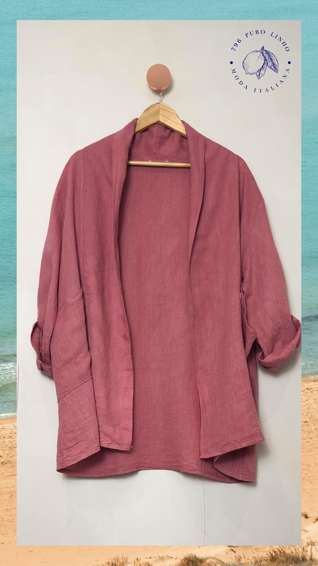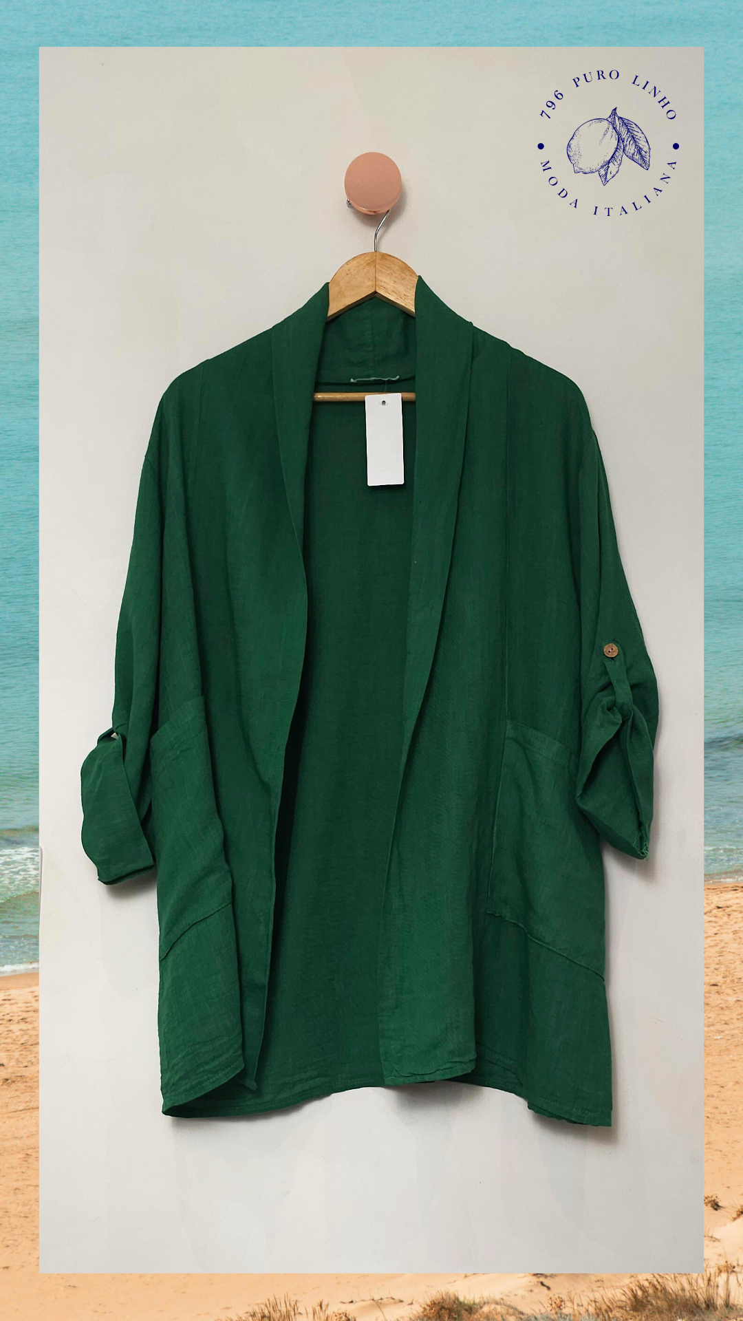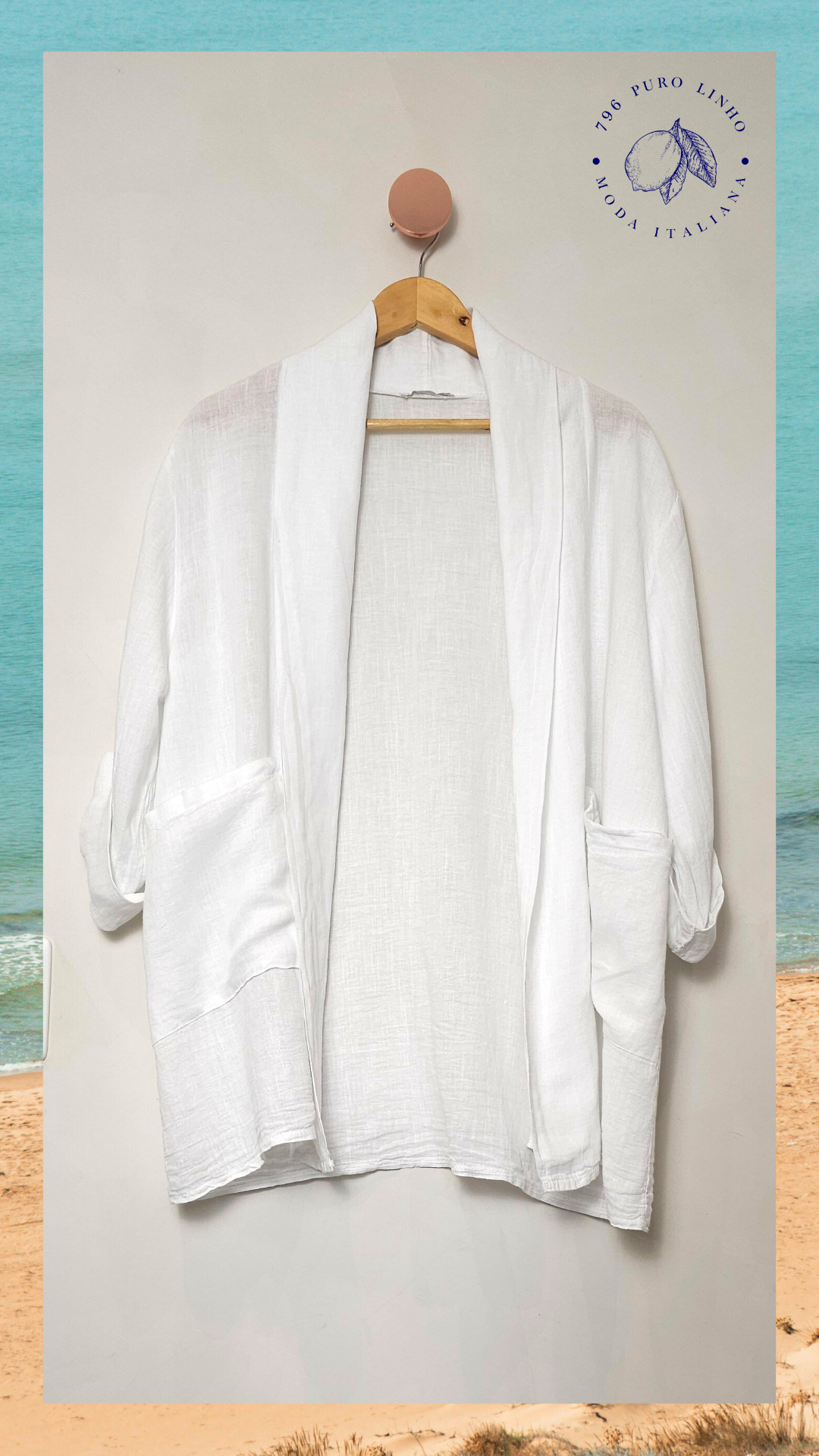 Blazer aberto em linho italiano.