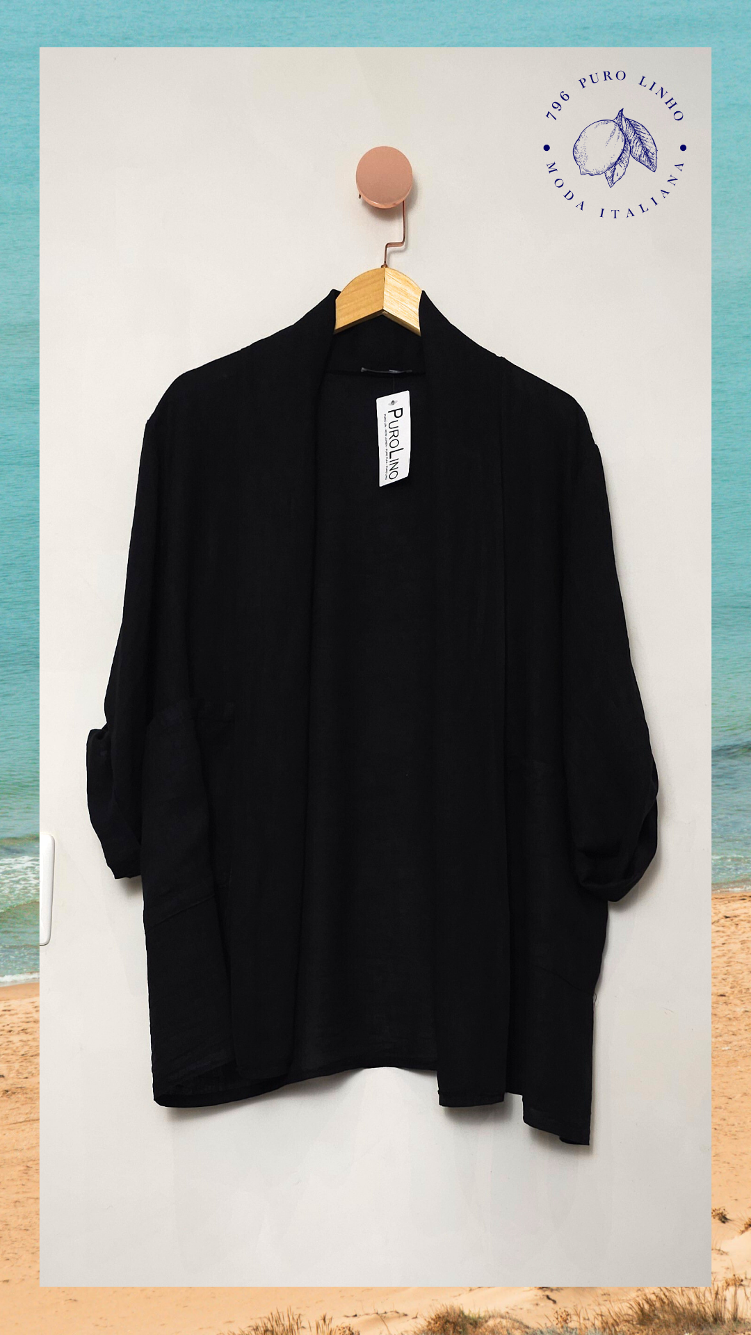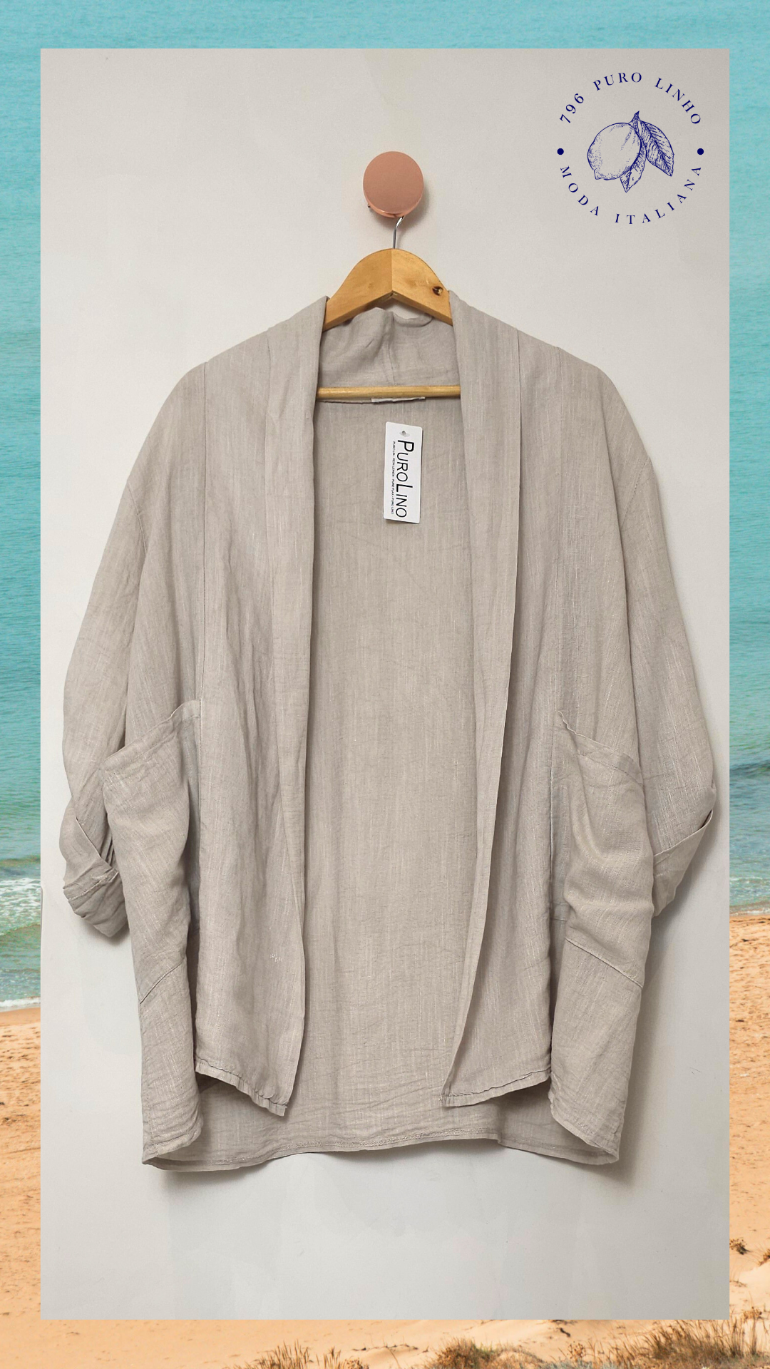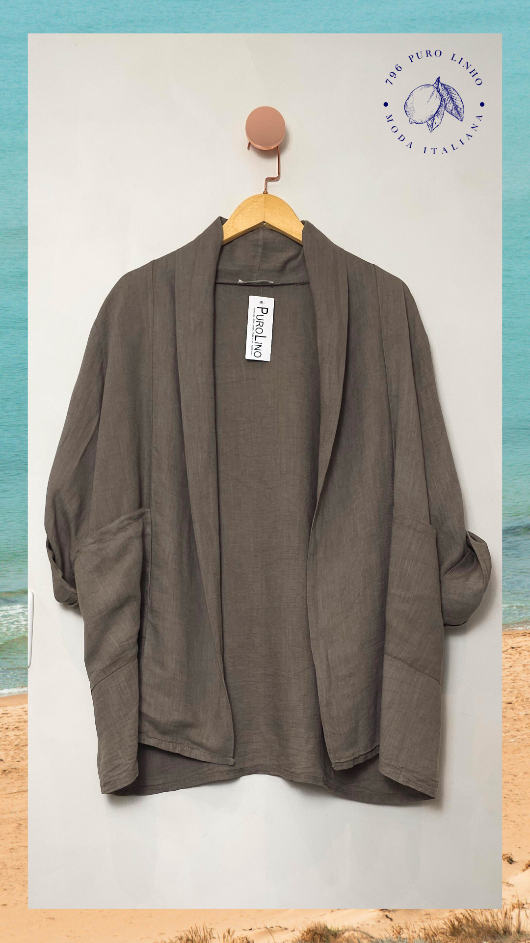 Blazer aberto em linho italiano.