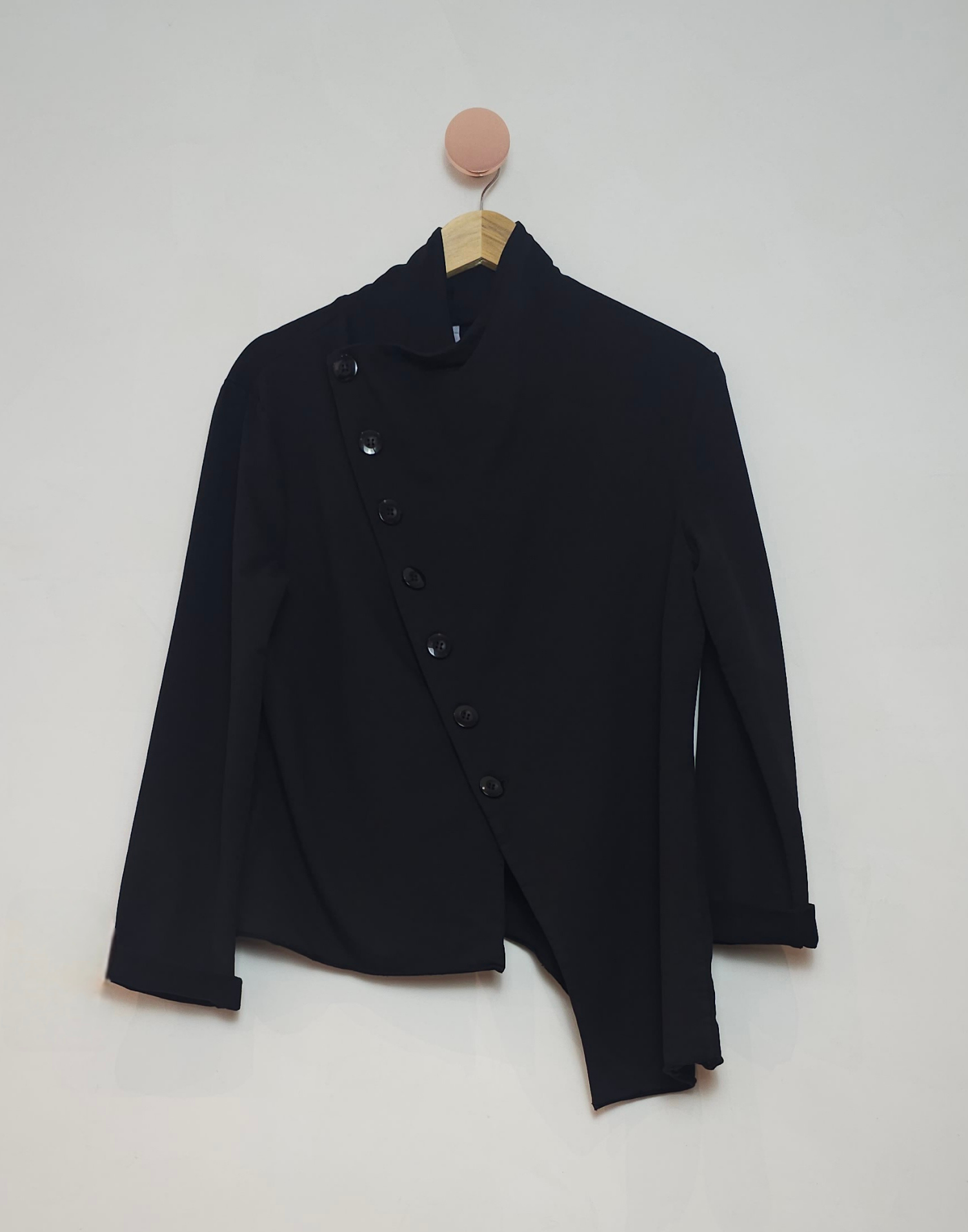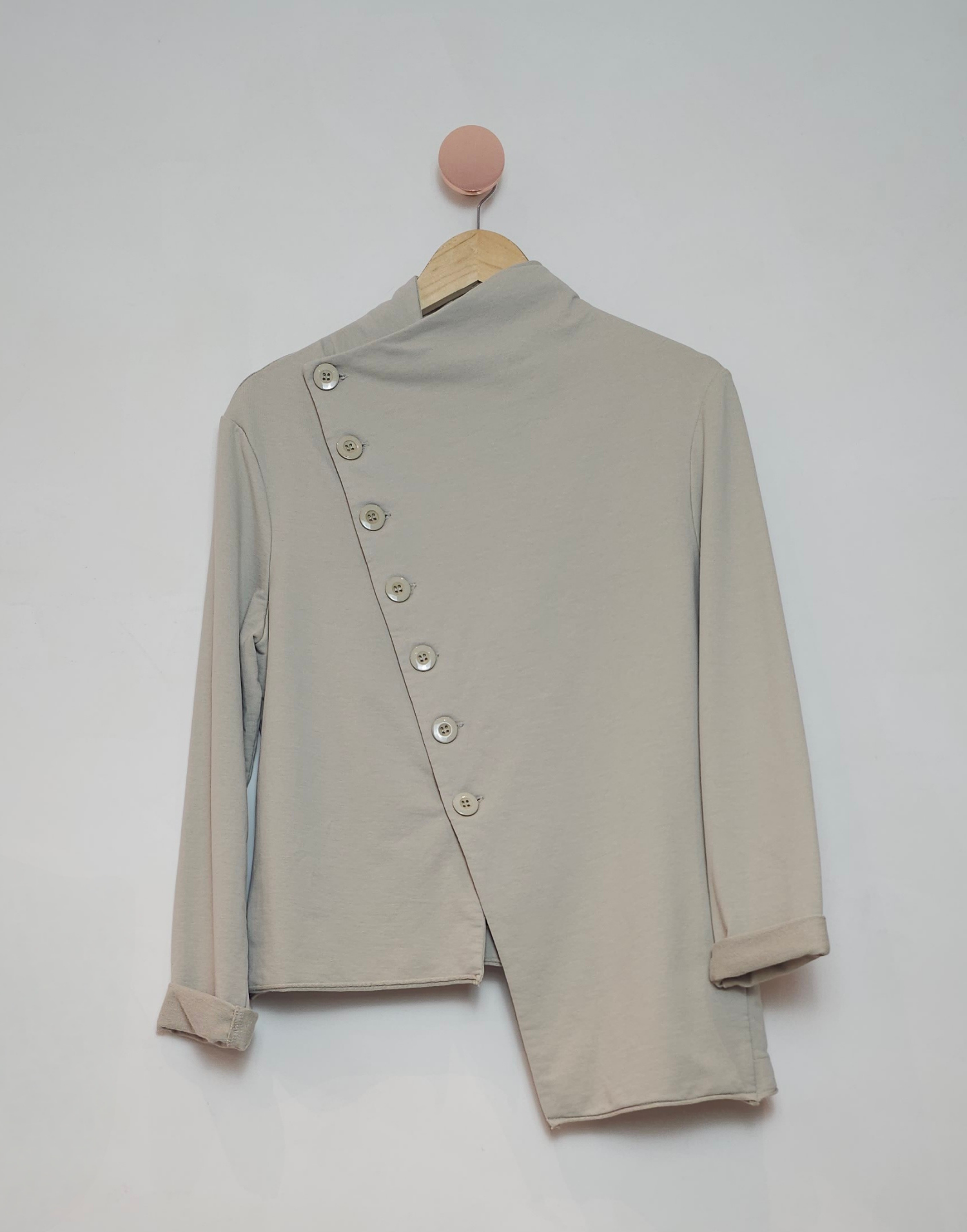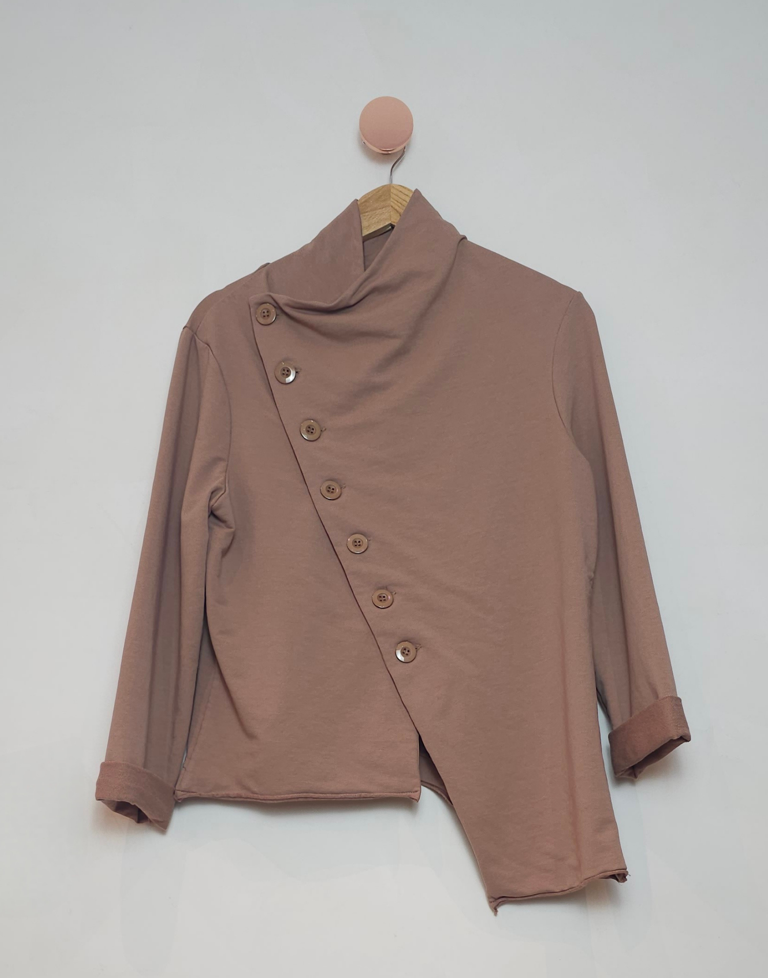 Jaqueta moletom assimétrica com botões grandes e bolsos